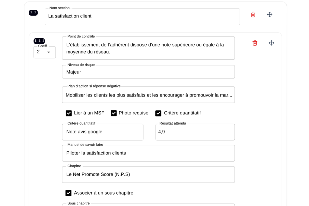 Déterminez si l’animateur doit intégrer une ou plusieurs photos ou un critère quantitatif attendu pour valider un point de contrôle spécifique.