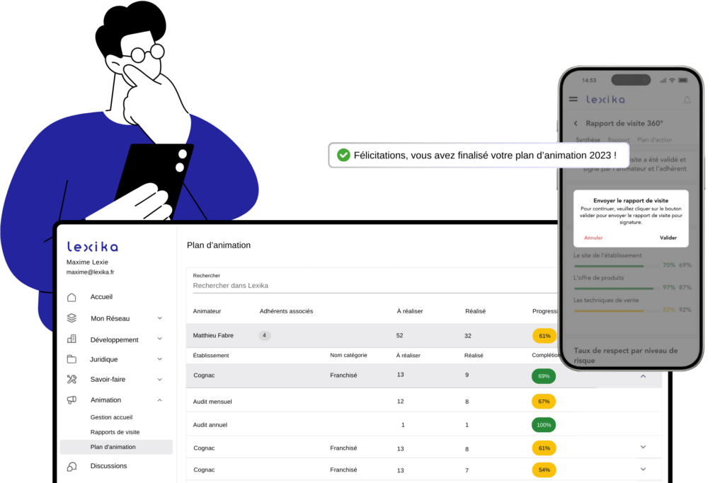 Partagez les bonnes nouvelles et les meilleures pratiques en centralisant la communication au sein de Lexika afin de garantir une transparence de l’information et le succès de vos équipes.